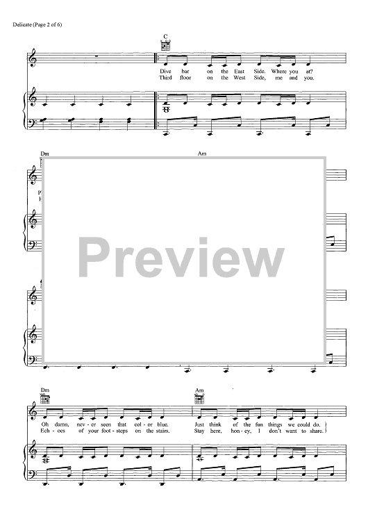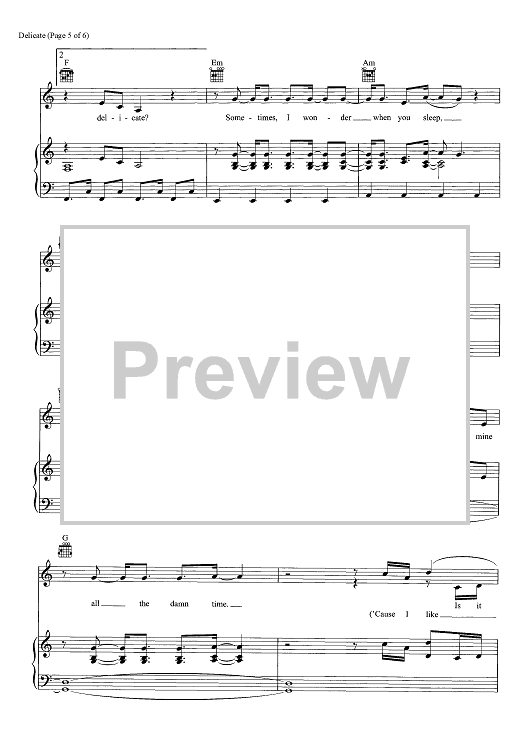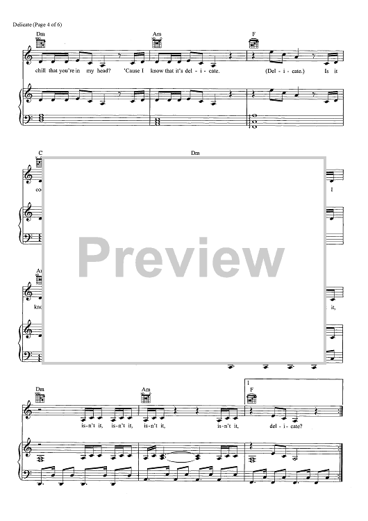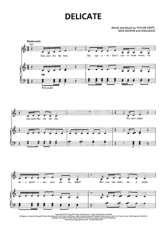 Digital Sheet Music for Delicate by Max Martin, Taylor Swift, Shellback scored for Piano/Vocal/Chords; id:466080