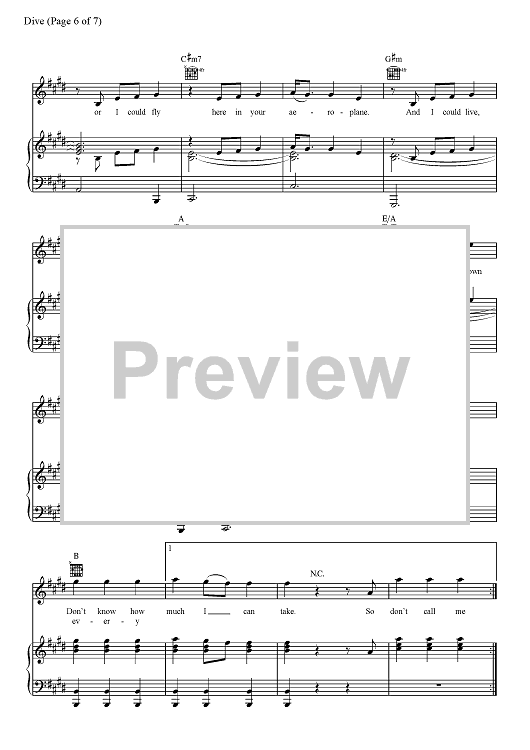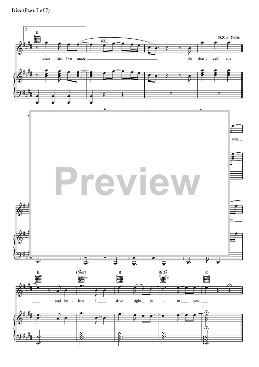 Digital Sheet Music for Dive by Benjamin Levin, Ed Sheeran, Julia Michaels scored for Piano/Vocal/Chords; id:464615