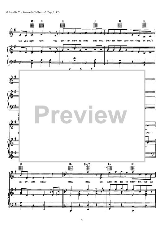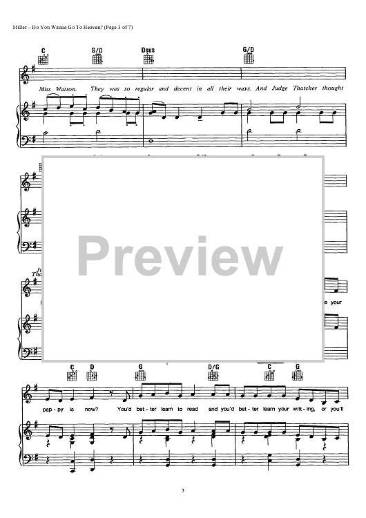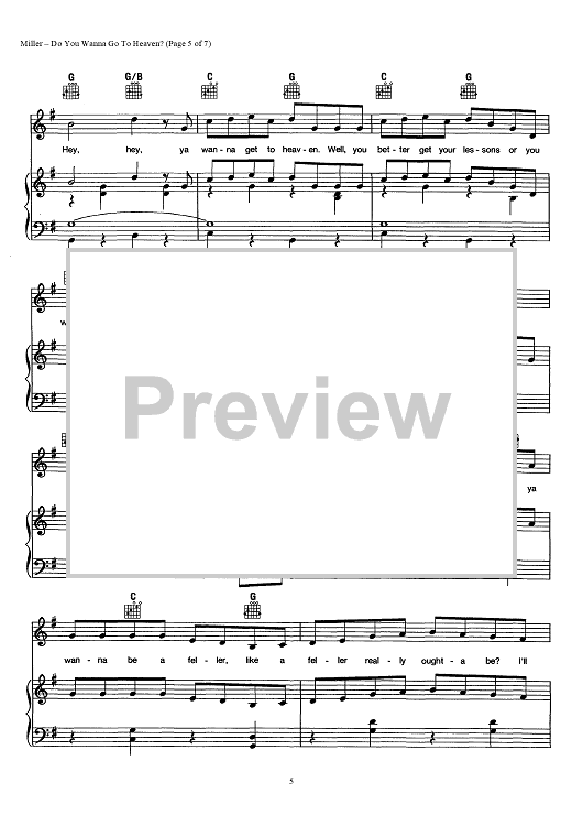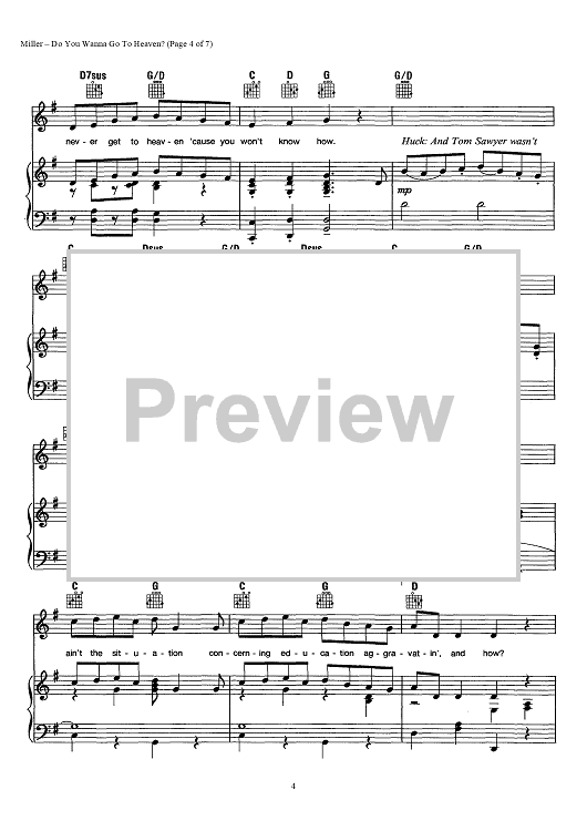 Digital Sheet Music for Do You Wanna Go To Heaven? by Roger Miller scored for Piano/Vocal/Chords; id:441877