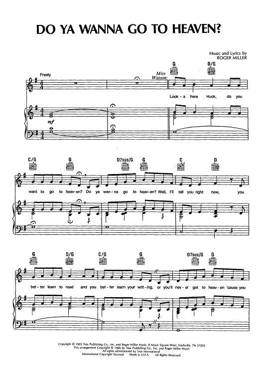 "Do You Wanna Go To Heaven?" Sheet Music by Roger Miller