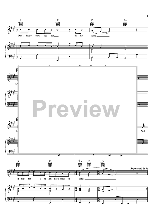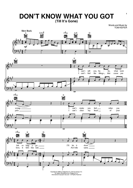 Digital Sheet Music for Don't Know What You Got (Till It's Gone) by Tom Keifer, Cinderella scored for Piano/Vocal/Chords; id:394944