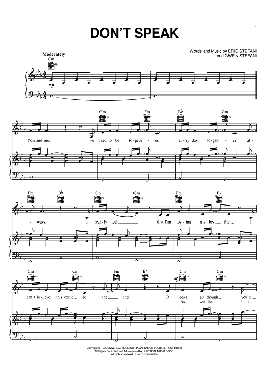 Digital Sheet Music for Don't Speak by No Doubt, Eric Stefani, Gwen Stefani scored for Piano/Vocal/Chords; id:383680