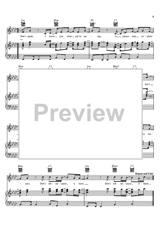 "Don't Speak" Sheet Music by No Doubt