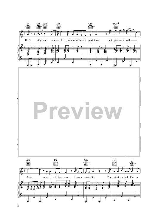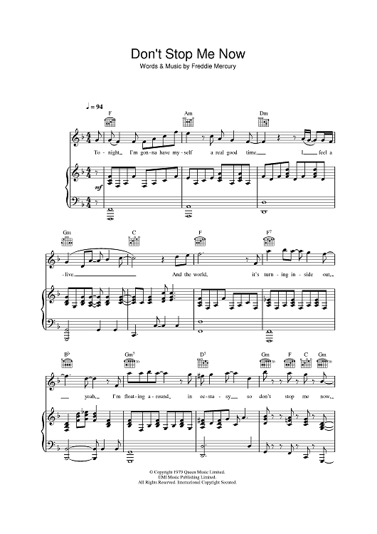 Digital Sheet Music for Don't Stop Me Now by Queen, Freddie Mercury scored for Piano/Vocal/Chords; id:390598