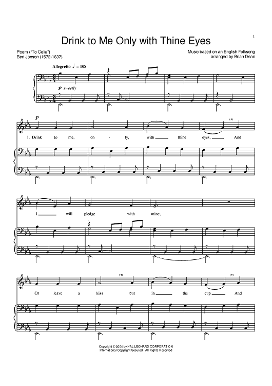 "Drink To Me Only With Thine Eyes" Sheet Music by Ben Jonson