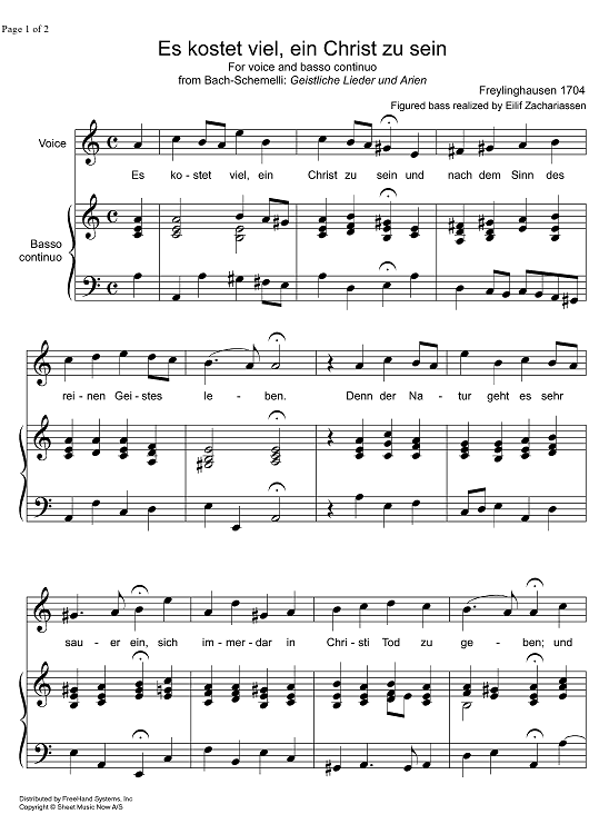 Digital Sheet Music for Es kostet viel, ein Christ zu sein by Johann Anastasius Freylinghausen, Eilif Zachariassen scored for Voice/Continuo; id:325928