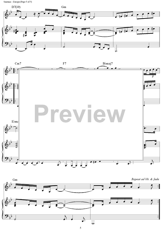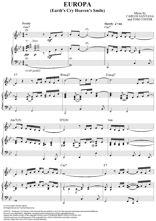 Digital Sheet Music for Europa (Earth's Cry Heaven's Smile) by Carlos Santana, Gato Barbieri, Tom Coster scored for Piano/Vocal/Chords; id:288234