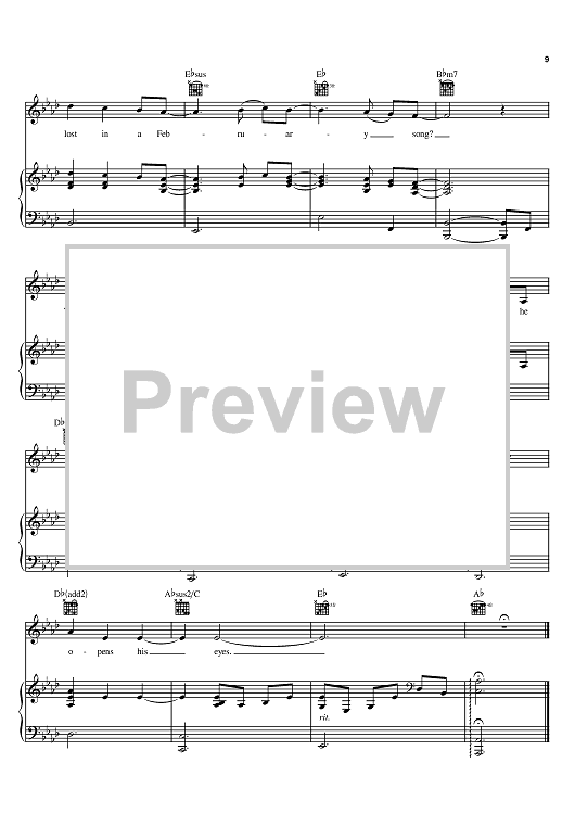 Digital Sheet Music for February Song by Marius De Vries, Josh Groban, Five for Fighting scored for Piano/Vocal/Chords; id:395524