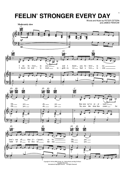 Digital Sheet Music for Feelin' Stronger Every Day by Peter Cetera, James Pankow, Chicago scored for Piano/Vocal/Chords; id:385067