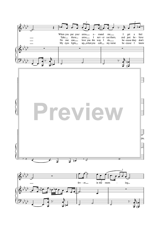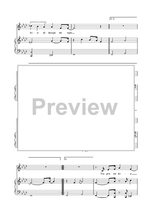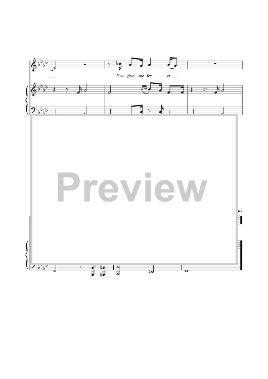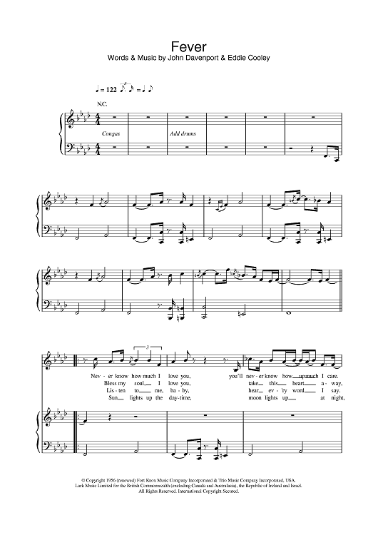 Digital Sheet Music for Fever by Elvis Presley, Tom Jones, Peggy Lee, Madonna, John Davenport, Eva Cassidy, Michael Buble, Eddie Cooley scored for Piano/Vocal/Chords; id:375832