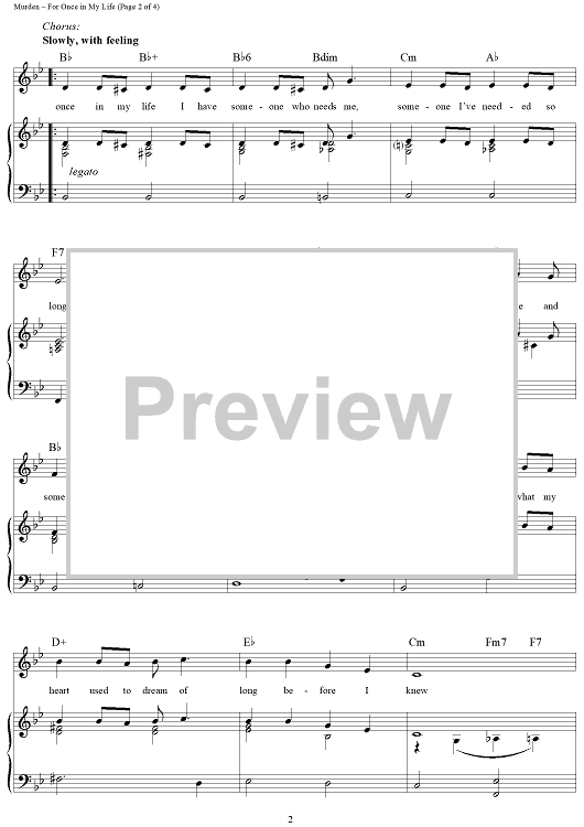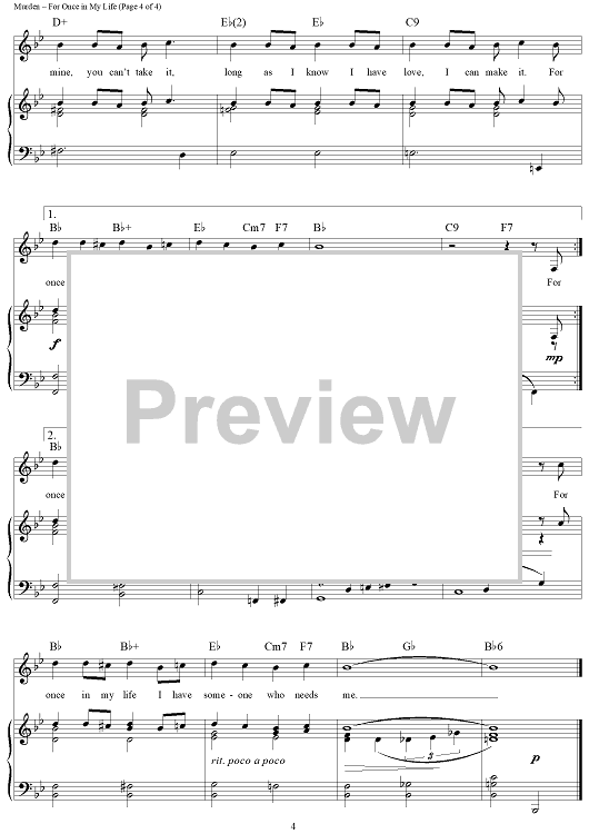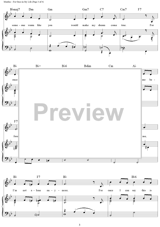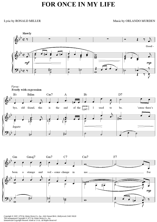 Digital Sheet Music for For Once in My Life by Stevie Wonder, Tony Bennett, Orlando Murden, Ronald Miller, Michael Buble scored for Piano/Vocal/Chords; id:362948