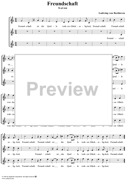 Digital Sheet Music for Freundschaft, WoO 164 by Ludwig van Beethoven scored for Three Voices; id:257992