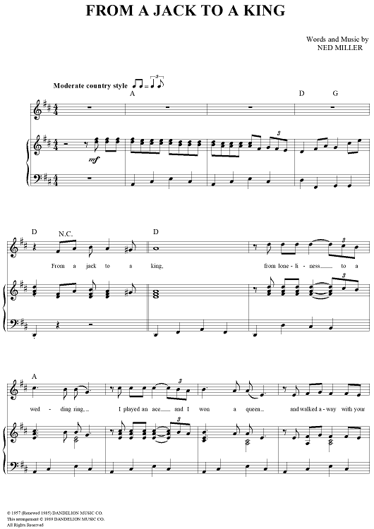 Digital Sheet Music for From a Jack to a King by Ned Miller scored for Piano/Vocal/Chords; id:251611