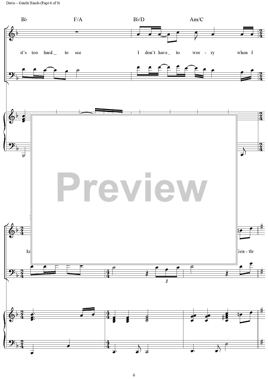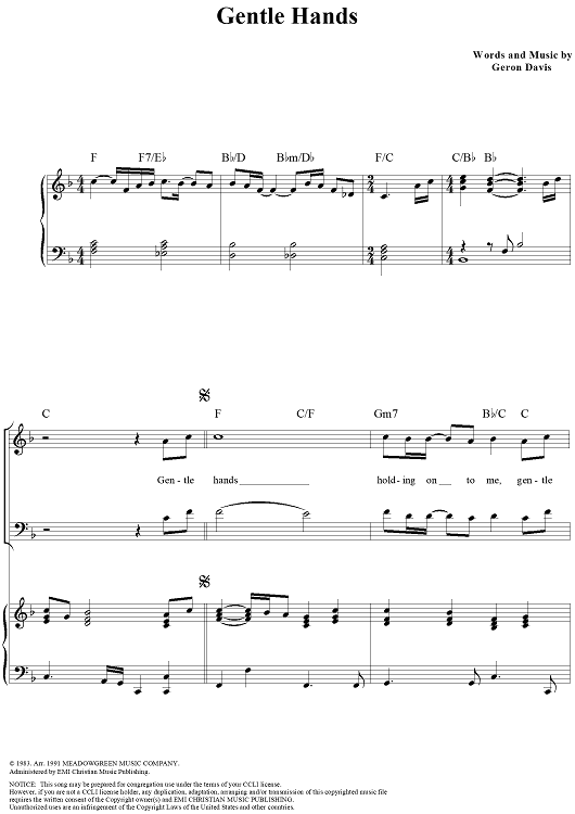 Digital Sheet Music for Gentle Hands by Geron Davis scored for Piano/Vocal/Chords; id:119358