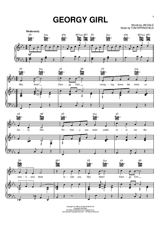 Digital Sheet Music for Georgy Girl by The Seekers, Tom Springfield, Jim Dale scored for Piano/Vocal/Chords; id:369860