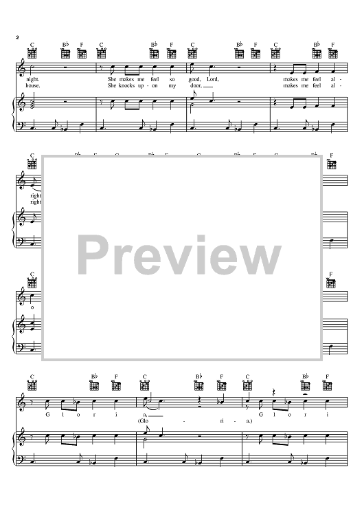 Digital Sheet Music for Gloria by Van Morrison, The Doors, Shadows Of Night scored for Piano/Vocal/Chords; id:369863
