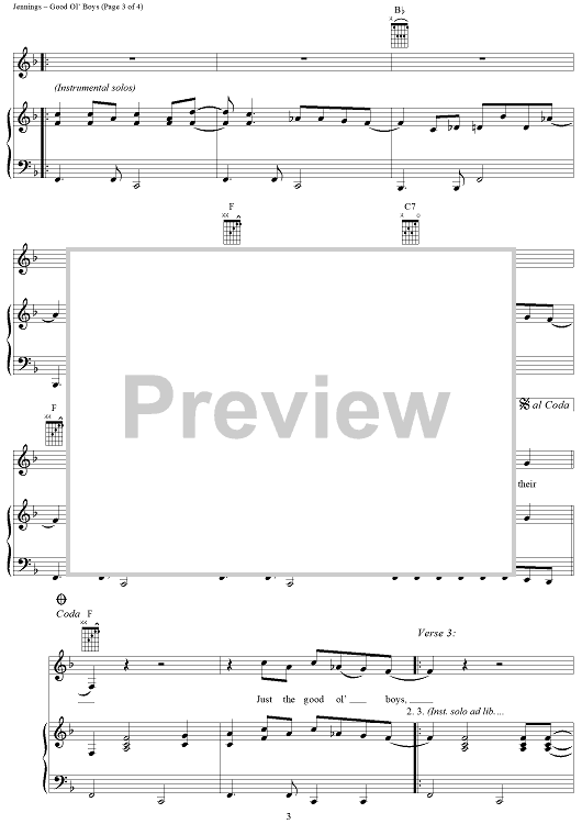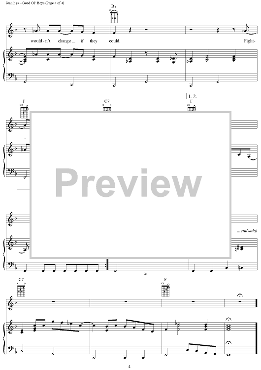 Digital Sheet Music for Good Ol' Boys by Waylon Jennings scored for Piano/Vocal/Chords; id:314711
