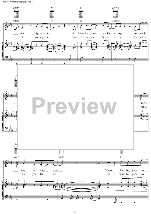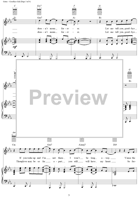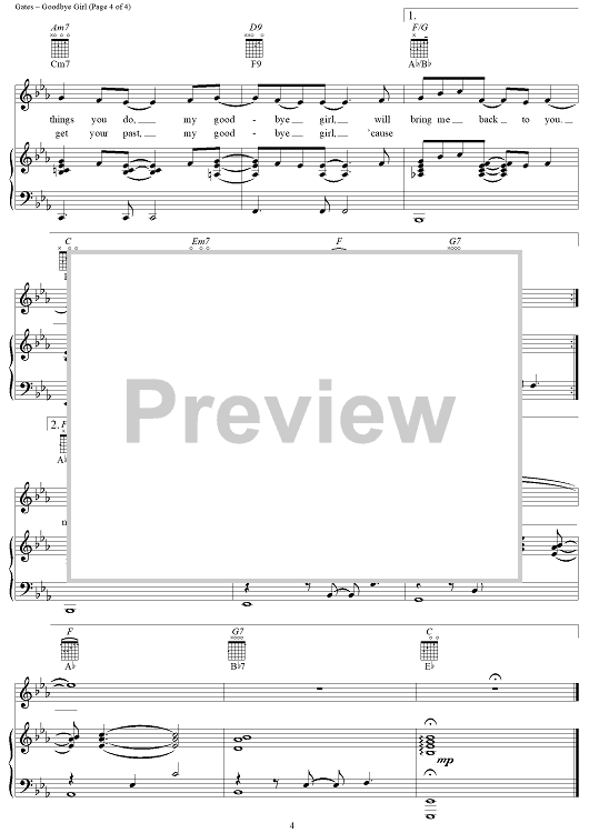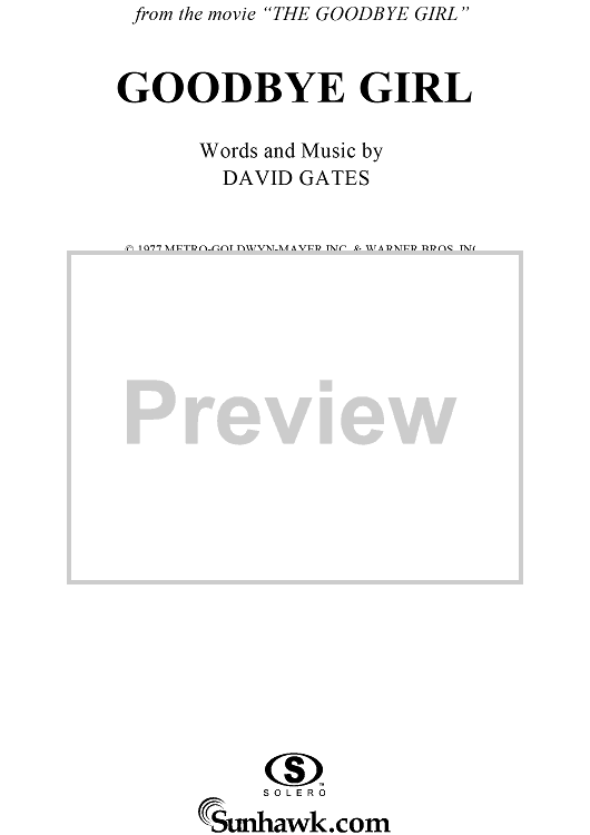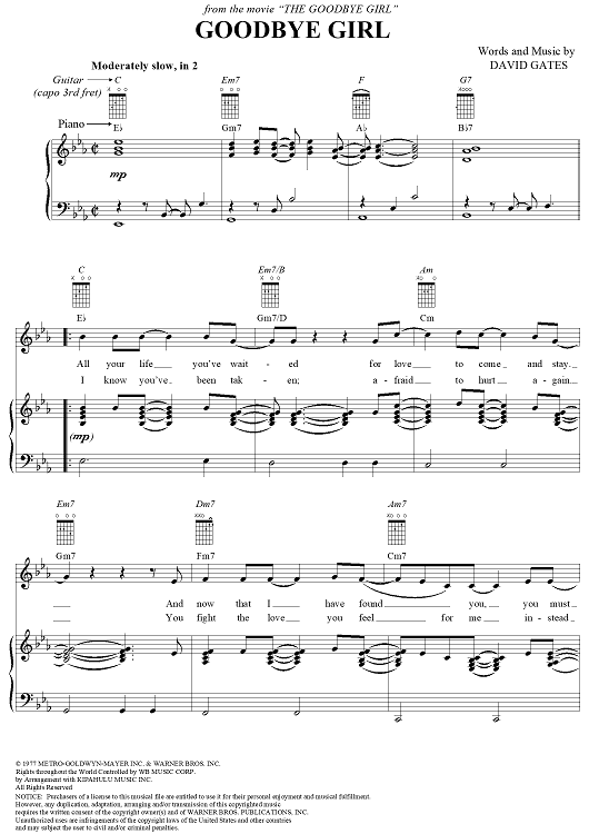 Digital Sheet Music for Goodbye Girl by David Gates scored for Piano/Vocal/Chords; id:116296