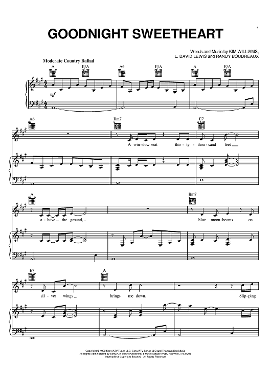 Digital Sheet Music for Goodnight Sweetheart by Kim Williams, Randy Boudreaux, David Kersh, L. David Lewis scored for Piano/Vocal/Chords; id:393099