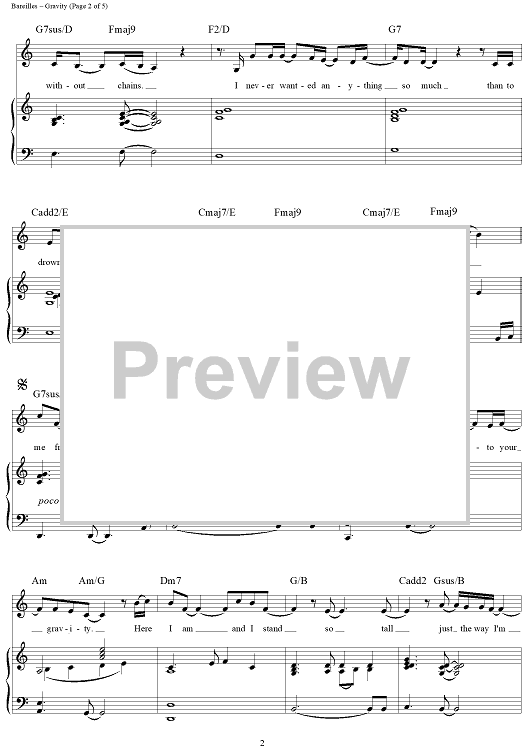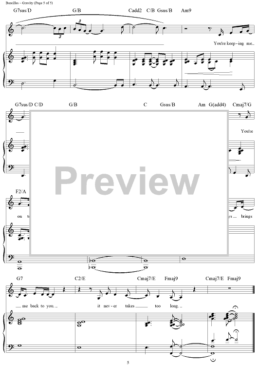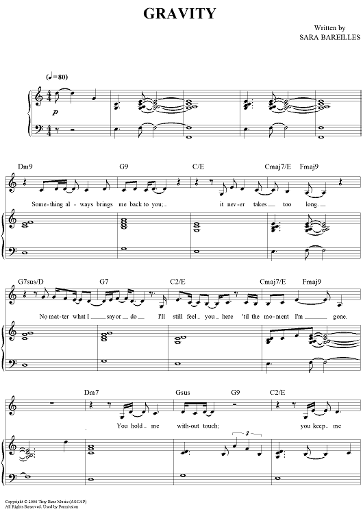 Digital Sheet Music for Gravity by Sara Bareilles scored for Piano/Vocal/Chords; id:403996