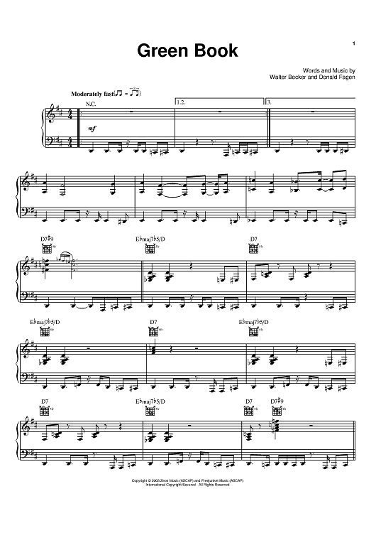 Digital Sheet Music for Green Book by Steely Dan, Donald Fagen, Walter Becker scored for Piano/Vocal/Chords; id:390681