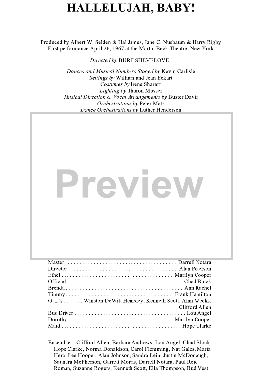 Digital Sheet Music for Hallelujah, Baby! (Cast) by , Jule Styne, Betty Comden, Adolph Green scored for Piano/Vocal/Chords; id:315081