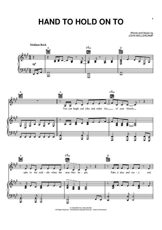 Digital Sheet Music for Hand To Hold On To by John Cougar Mellencamp scored for Piano/Vocal/Chords; id:369247