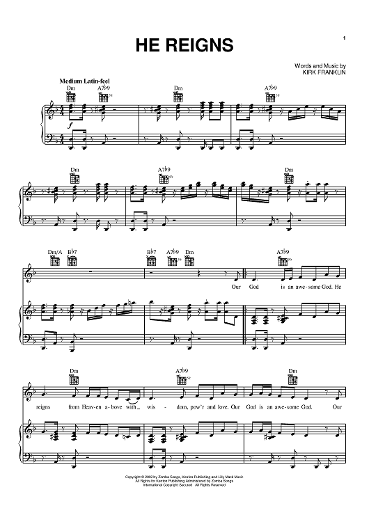 Digital Sheet Music for He Reigns by Kirk Franklin scored for Piano/Vocal/Chords; id:391009