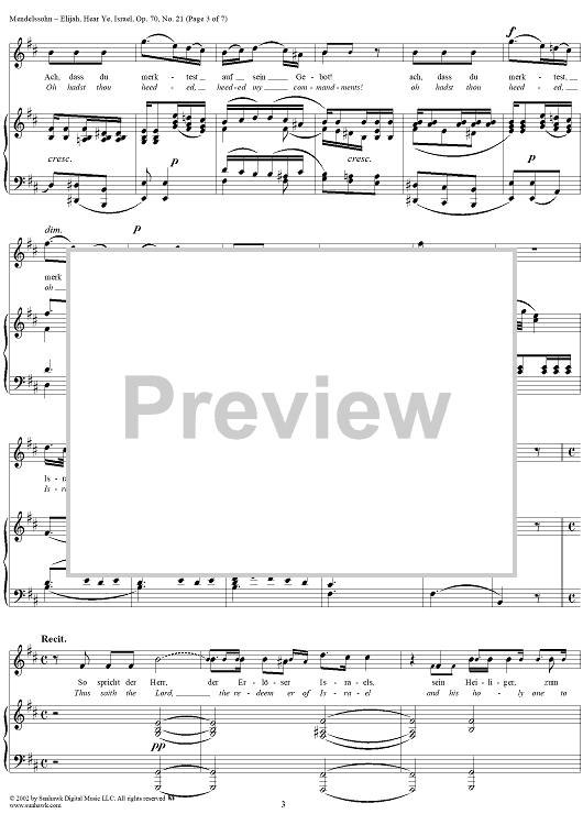 Digital Sheet Music for Hear Ye, Israel - No. 21 from "Elijah", part 2 by Felix Mendelssohn scored for Vocal Score; id:252242