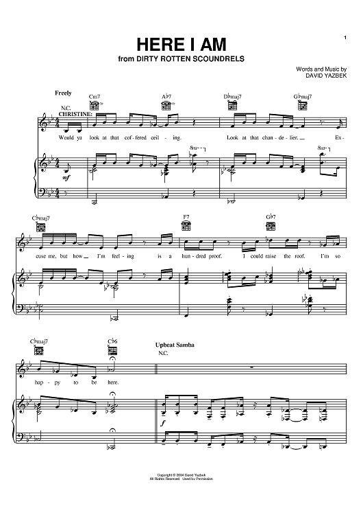 Digital Sheet Music for Here I Am by David Yazbek scored for Piano/Vocal/Chords; id:388139