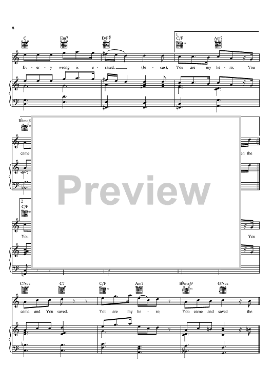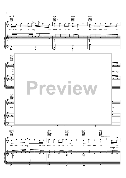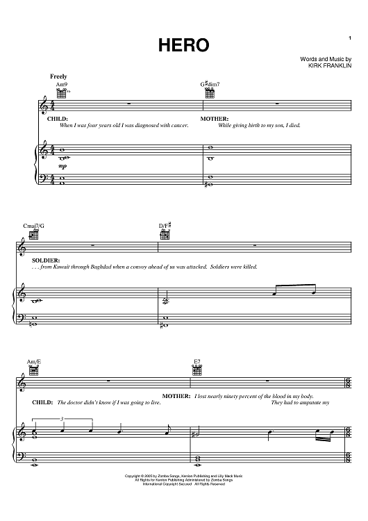 Digital Sheet Music for Hero by Kirk Franklin scored for Piano/Vocal/Chords; id:388837