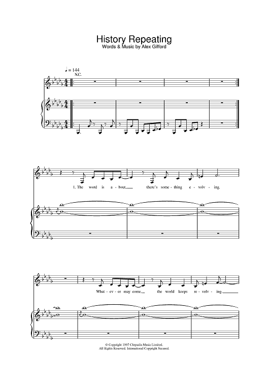 Digital Sheet Music for History Repeating by Propellerheads, Shirley Bassey scored for Piano/Vocal/Chords; id:377214
