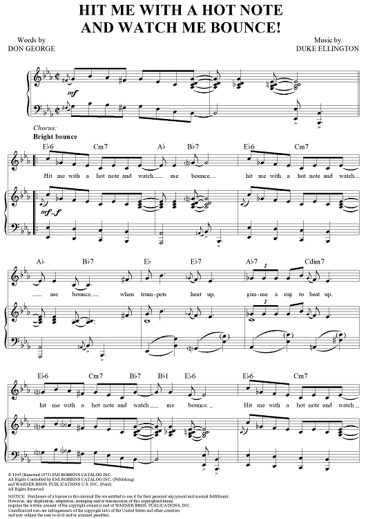 Digital Sheet Music for Hit Me With a Hot Note and Watch Me Bounce! by Duke Ellington, Don George scored for Piano/Vocal/Chords; id:270537