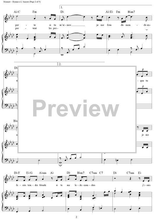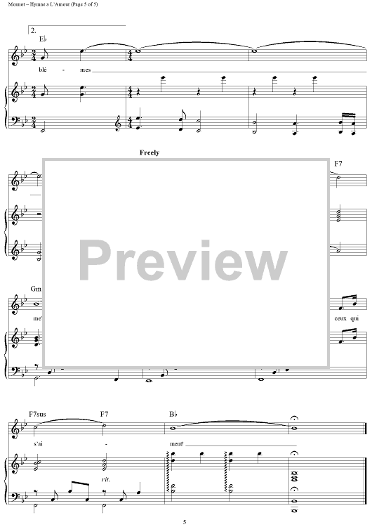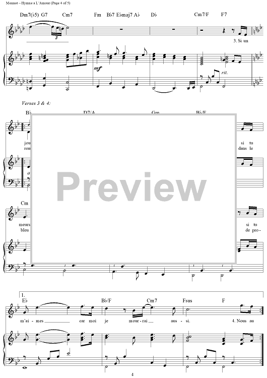Digital Sheet Music for Hymne a L'Amour by Edith Piaf, Josh Groban, Marguerite Monnot scored for Piano/Vocal/Chords; id:307426