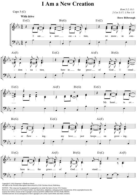 "I Am a New Creation" Sheet Music by Dave Bilbrough