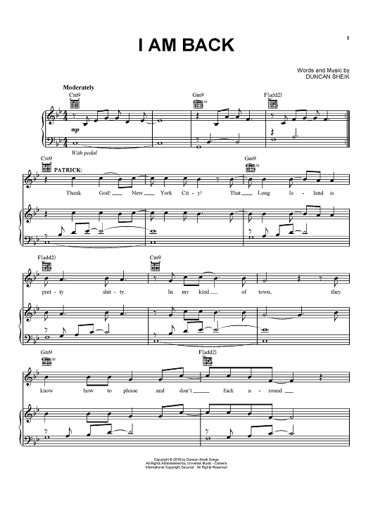 Digital Sheet Music for I Am Back by Duncan Sheik scored for Piano/Vocal/Chords; id:459876