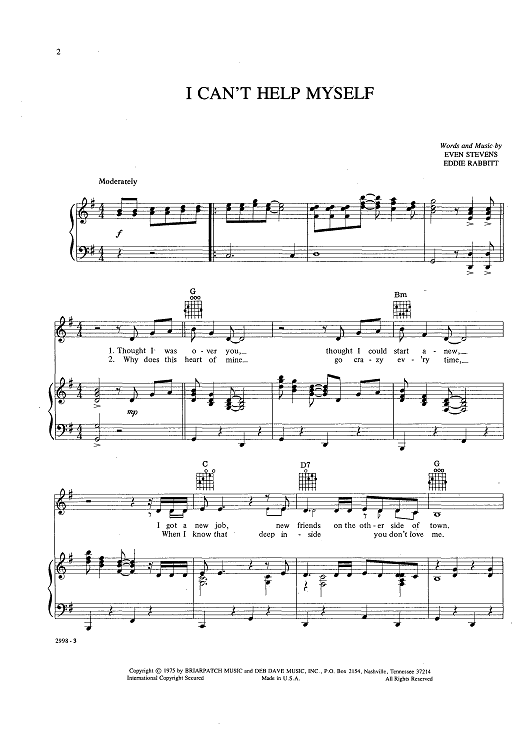 "I Can't Help Myself" Sheet Music by Eddie Rabbitt