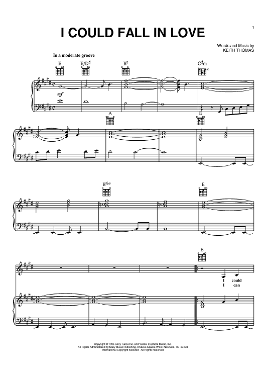 Digital Sheet Music for I Could Fall In Love by Selena, Keith Thomas scored for Piano/Vocal/Chords; id:367970