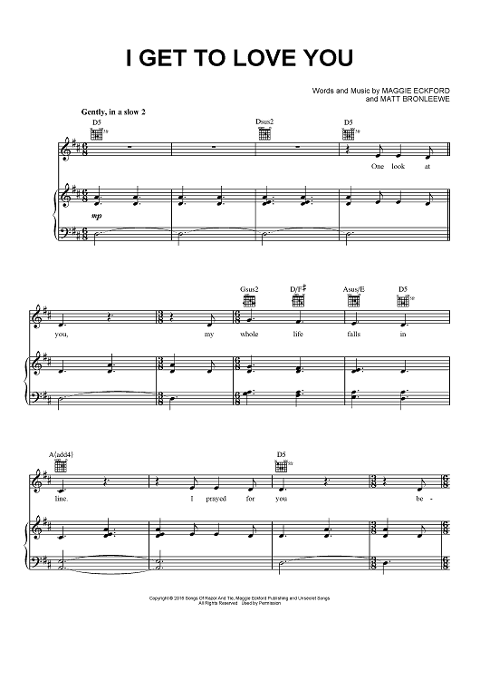Digital Sheet Music for I Get To Love You by Matt Bronleewe, Ruelle, Maggie Eckford scored for Piano/Vocal/Chords; id:458241