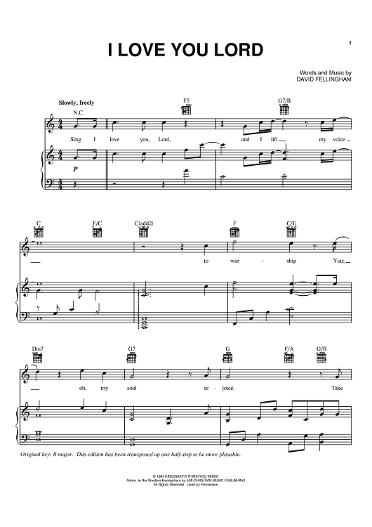Digital Sheet Music for I Love You Lord by David Fellingham, The Katinas scored for Piano/Vocal/Chords; id:369839