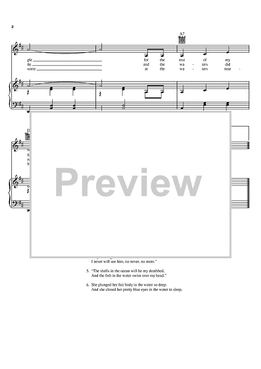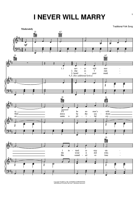 Digital Sheet Music for I Never Will Marry by scored for Piano/Vocal/Chords; id:393901