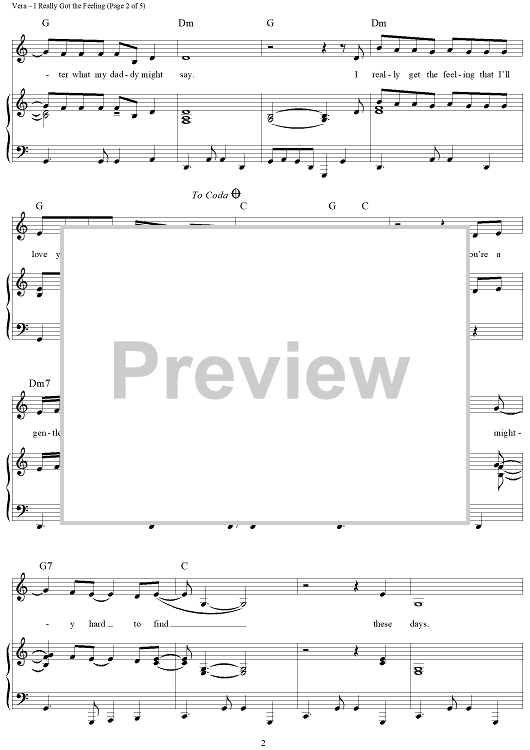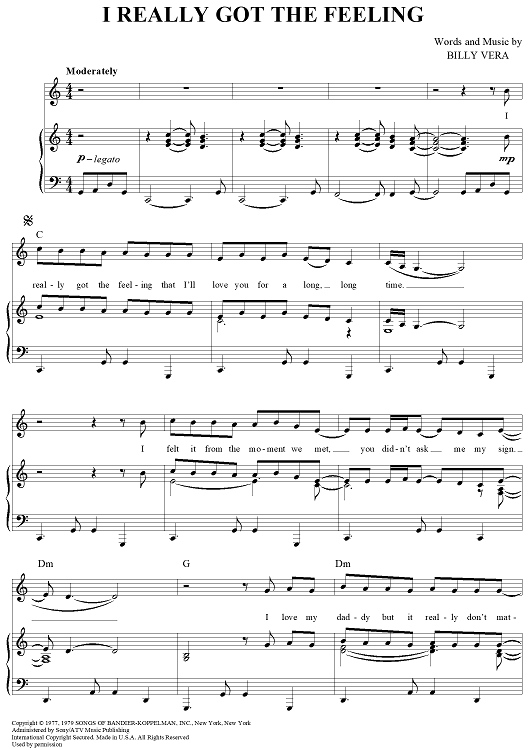 Digital Sheet Music for I Really Got the Feeling by Billy Vera, Dolly Parton scored for Piano/Vocal/Chords; id:362779