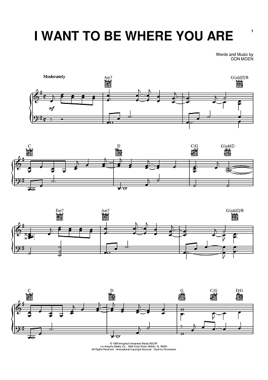 Digital Sheet Music for I Want To Be Where You Are by Don Moen scored for Piano/Vocal/Chords; id:372127
