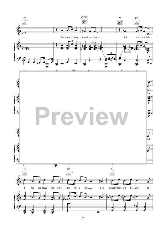Digital Sheet Music for I Was A Little Too Lonely by Jay Livingston, Ray Evans, Nat King Cole scored for Piano/Vocal/Chords; id:465727