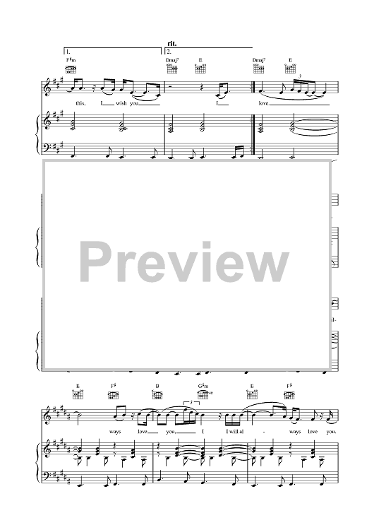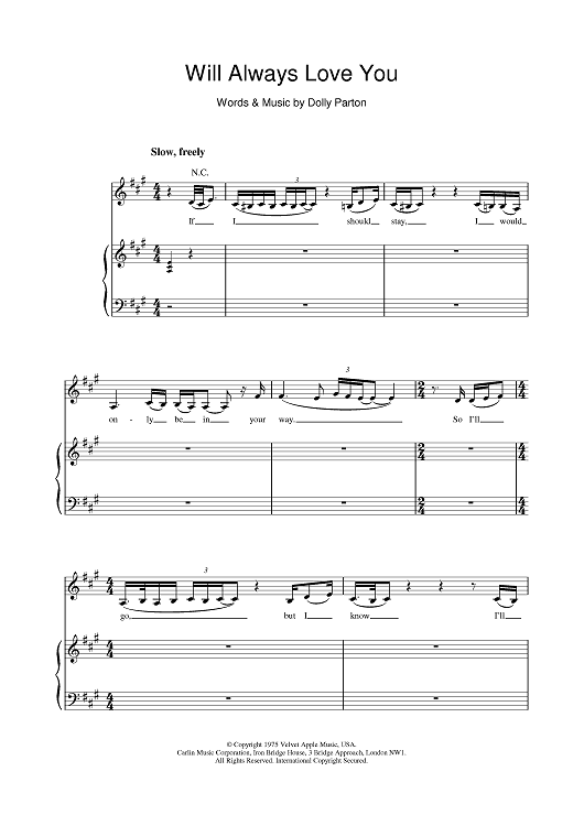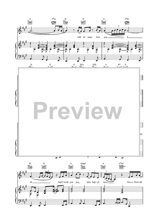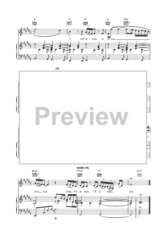 Digital Sheet Music for I Will Always Love You by Whitney Houston, Dolly Parton scored for Piano/Vocal/Chords; id:379646