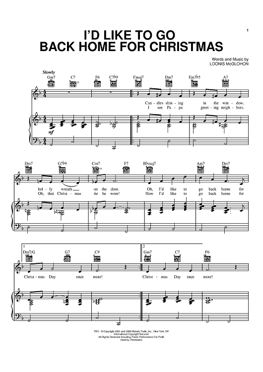 "I'd Like To Go Back Home For Christmas" Sheet Music by Loonis McGlohon