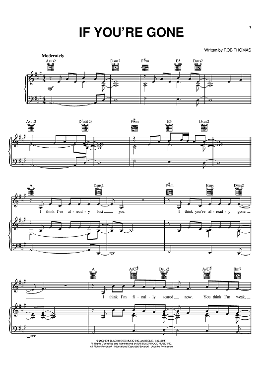 Digital Sheet Music for If You're Gone by Matchbox Twenty, Rob Thomas scored for Piano/Vocal/Chords; id:383708