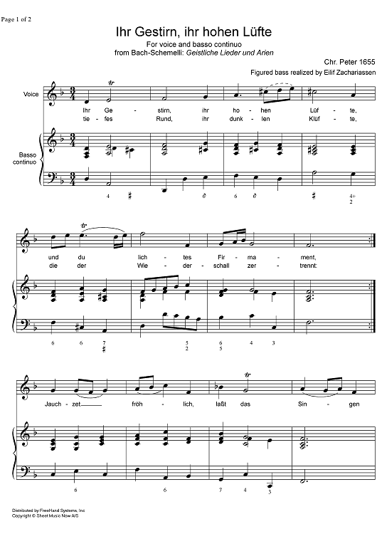 Digital Sheet Music for Ihr Gestirn, ihr hohen Lüfte by Christian Peter, Eilif Zachariassen scored for Voice/Continuo; id:326301