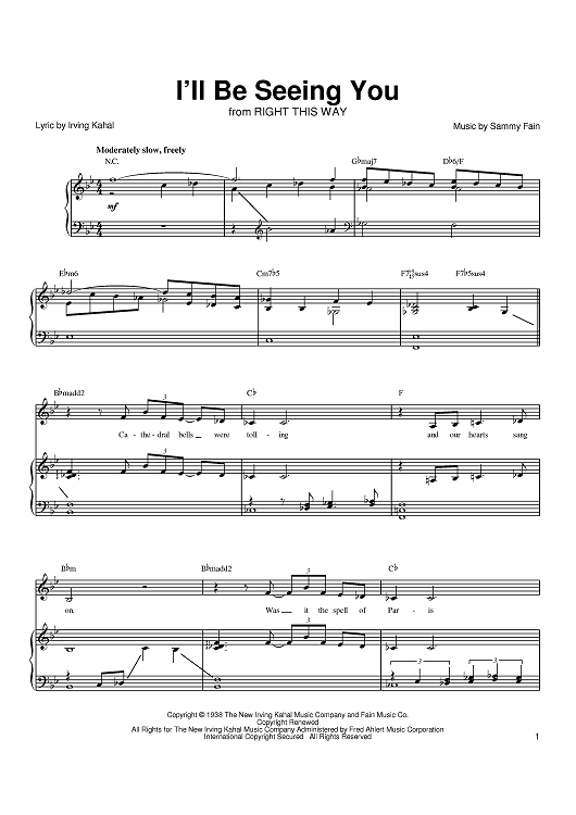 Digital Sheet Music for I'll Be Seeing You by Linda Eder, Billie Holiday, Sammy Fain, Jo Stafford, Irving Kahal scored for Piano/Vocal/Chords; id:374702