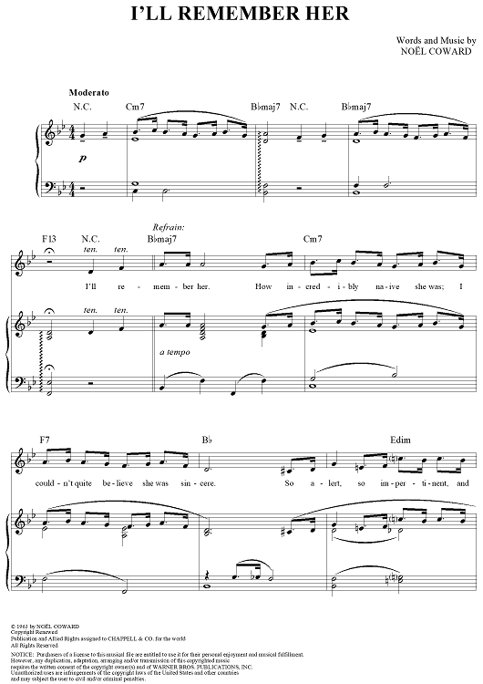 Digital Sheet Music for I'll Remember Her by Noel Coward scored for Piano/Vocal/Chords; id:356674